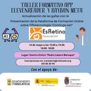 El próximo 14 de mayo, el Centro Cívico «Pedro Lázaro Baruque» en Torrelavega acogerá un taller formativo gratuito centrado en la APP ElevenReader y la actualización de las gafas inteligentes Ray-Ban Meta con inteligencia artificial.